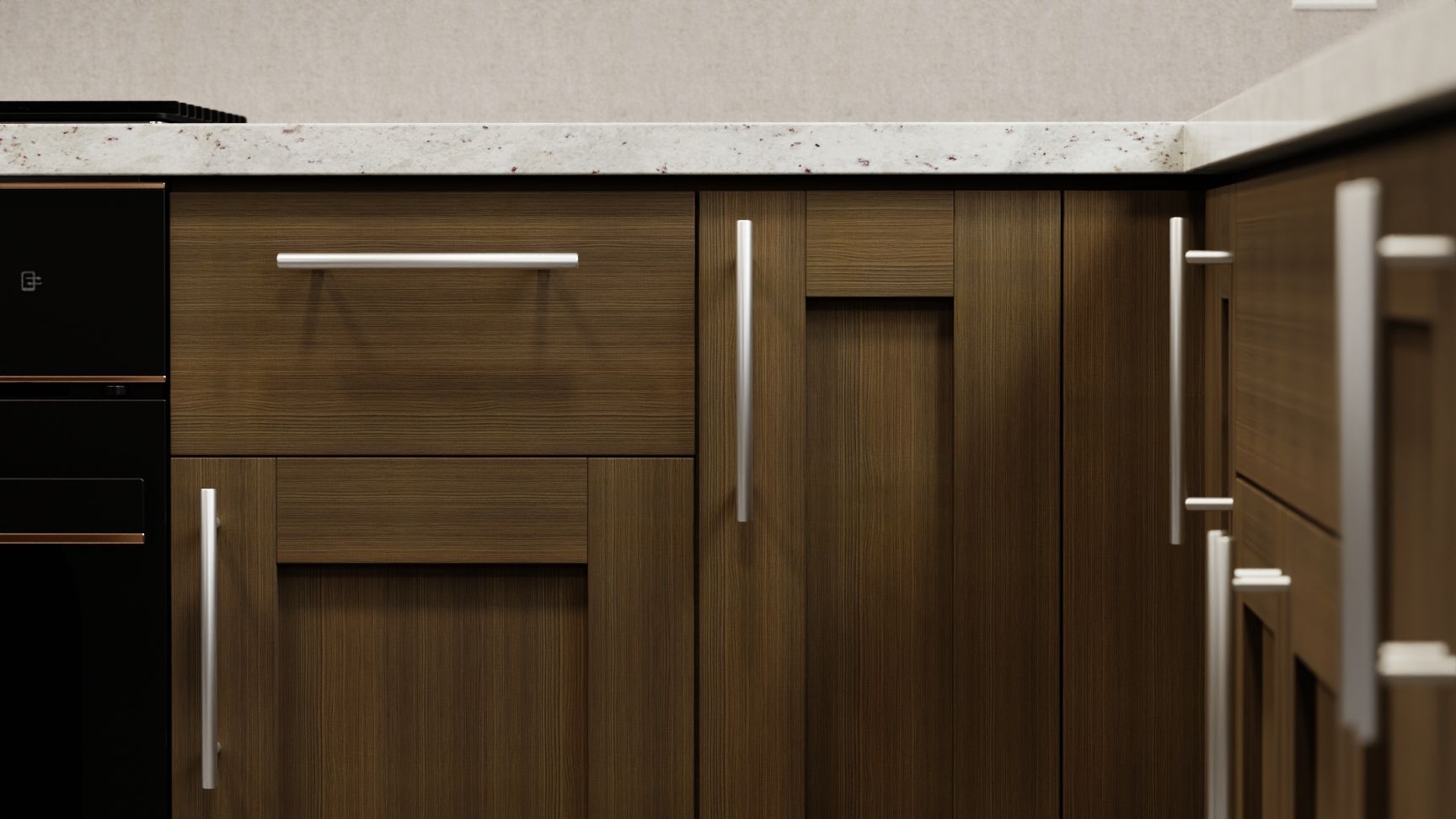 A melamine T.F.L finish has a smooth, consistent texture that feels durable and easy to maintain. Its even surface resists scratches and stains, offering a practical, low-maintenance choice with a uniform look.